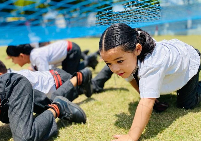 Great emphasis is laid on physical fitness, games and sports. It is our firm belief that, leadership qualities in young minds are forged on the games field. As a part of the school curriculum, all children have to take part in games and sports. Facilities exist for football, basketball, handball, cricket, athletics, badminton, yoga and martial arts.